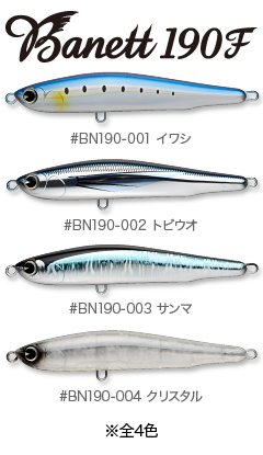 2014年4月25日発売! Banett 190F(バネット190F) [全長]190mm[重量]65g(フックレス)[推奨フック]ST66 #2/0 [価格]3,800円(税別)